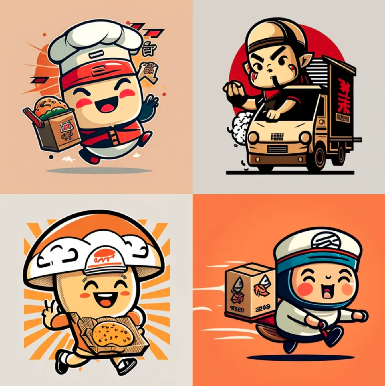 /imagine simple mascot for a food delivery company, Japanese style